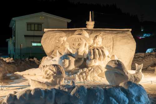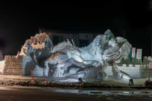 あまりの暖冬に雪像の一部が溶けてしまうような状態。