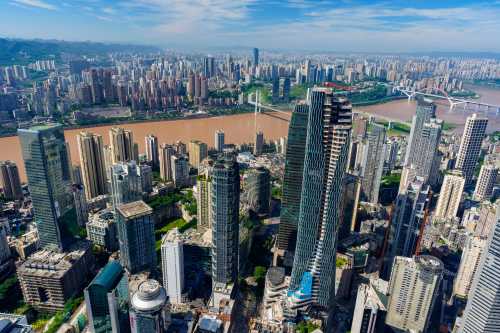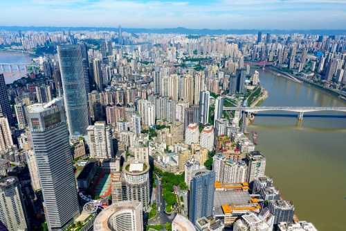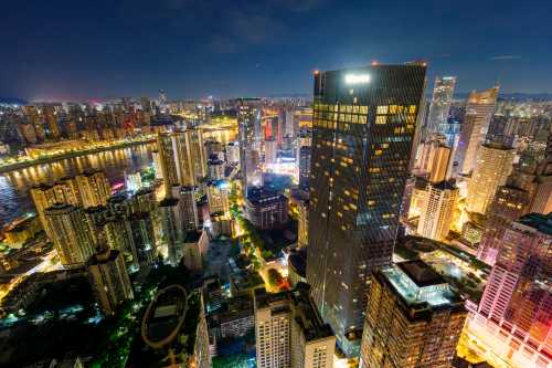 が、英語表記だと何も分からんようだ。 全く伝わりもせん。 向こうはチャイニーズしか話せないし、これは参った。 インストールしてきた百度という地図を見せて、ようやく伝わったようだ。 今回初めて気づいたのだが、Google Mapsは中国の地図が上手く表現できておらず、 航空写真と道路地図がリンクしてない。 そのため、百度という中国版Google Mapsが必要になるわけだ。 ところがこのアプリは100パー中国語。 広告も立ち上がるし、正直使いにくいのだが、インストールしてきて良かった。 市内まで向かう車窓には、天にそびえる高層ビルが沢山。 重慶は、想像以上にとんでもない大都会だった。 タクシーはホテルの場所が分からずウロウロしているが、 多分ココだということで下ろしてもらった。 お値段は忘れたが大した金額ではなかった。 ホテルは事前に調べてきた展望台のあるビルの中。 展望台が67階で、ホテルは58階。