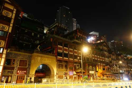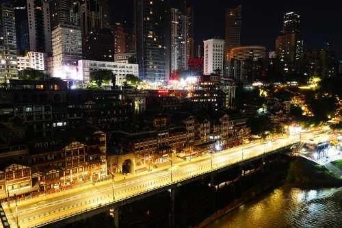 ビルの中にテナントで沢山のホテルが入居しており、そのうちの一つ。 この手のスタイルっぽいことが想像できたのは、 年末のオーストラリア旅行の経由地香港で学んできた産物である。 寝てるから電話してくれとのメッセージを見て電話。 ハローキティの服を着たねーちゃんが起きてきてくれてチェックイン手続きをすると、 我輩の部屋は期待した北向きではなく南向き。 ビル群が見える向きじゃないのは残念だ。 しかし、リビングに風呂がある大展望の部屋で一泊一万五千円。 これは安いと思う。 さて、時間はすでに25:00ではあるものの、明日しかないので見れるものは見ておきたい。 重慶の有名な夜景、洪崖洞へ行ってみる。 ホテルからは徒歩で20分ほどのようだ。 熊谷ほどではないが少し蒸しっとする中、Google Mapsをあてに歩いていくと、 長ーい階段が。 そしてその突き当たりが通行止め。 コレには挫けそうになったが、 明日のためにロケハンもしておきたいので頑張って歩き回って、 洪崖洞に着いたらライトアップは終わっていた。