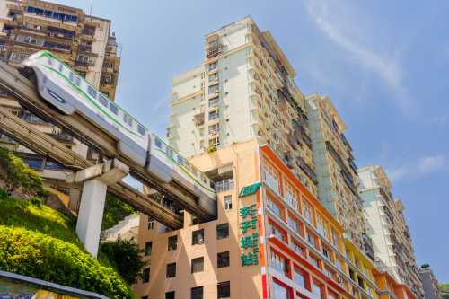 まるでマンハッタンではないか。 これは夜景が楽しみだ。 今日はもう一つ、有名であるらしい展望台を予約してきてある。 それが期せずして我輩のホテルの屋上だったわけだな。 さて、次はマンションにモノレールが突っ込むところを撮りましょう。 重慶は地下鉄が沢山走っていて、その中のライン2がモノレールになっている。 一日乗車券を買って乗り継いで行ってみると、とんでもない人の数。