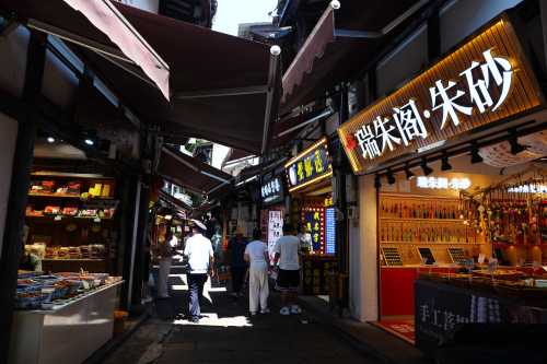 古い町並みのことを古鎮というようである。 町並みは再現されているのだが、中国の人々は電光ギラギラが大好きなのもあって、 雰囲気はあまりない。 並びも土産屋ばかりである。