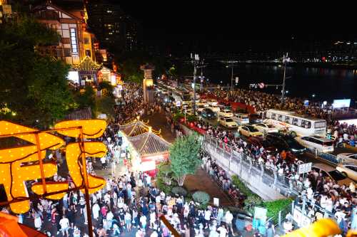 うーむ。これが中国の現実か。 お花や地球儀、中国国旗とかそういうのを想像してたので、 ちょっとカルチャーショックであった。 日本の脳味噌お花畑ぶりがツライわ。 散々待ったドローンショーにガッカリし、 展望台を下りて地下鉄に乗り、洪崖洞の対岸へ。 昨日のロケハンで、近くで見るより対岸の方が良いのではないかと思ったのだ。 ドローンショーを見たであろう人々で込み合う地下鉄に乗って降りるとここも大変な人。 みんな展望台よりドローンショーというわけだな。 対岸から見たらこんな感じ。 近づくとさらにこんな感じだが、見よこの人混みを。 半端ねー。 そこから混み合う橋を渡って、流れに乗って洪崖洞に入っていく。 もうすぐクローズなハズなのにすげー混んでる。 基本的に中は飯を食うとこだな。 色々と道が限定されているので、昨日ロケハンで深夜歩いておいて正解だった。 無事に撮影して帰ることにする。 本当なら重慶はどうやら麻辣料理の本場で、しっかり食いたいところだが、もはや23:00。 今から食っておなかが緩くなったら耐えられない。 帰りの空港で何か食べるぐらいにしておく。 なので今日はお菓子とジュース。 汗をかきすぎて、ジュースだけで十分な感じだ。 ホテルに帰るなり大爆睡であった。