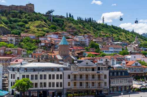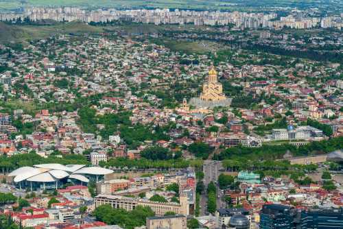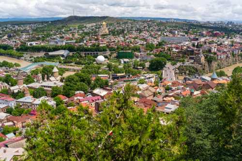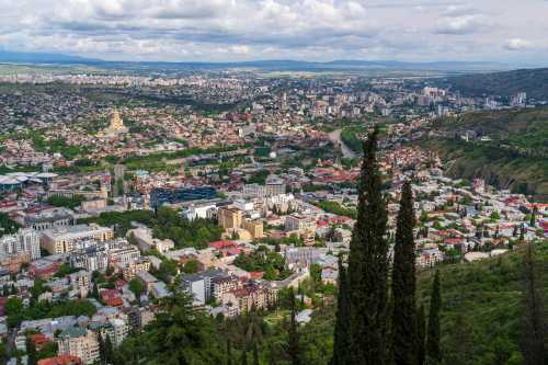 途中駅で降りて山の上まで歩くこともできるようだ。 まぁ我輩はメンドクサイのでそんなことはしない。 頂上には遊園地とレストランがあって、レストラン側に展望台がある。 トビリシ最後の景色を見下ろす。