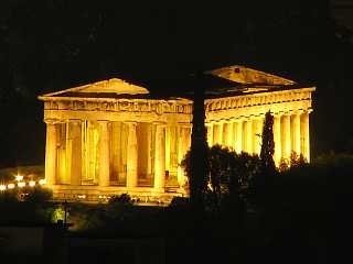 5:30起床。 CNNがまもなく年明けの放送をしている。 さすがはメリケン。 アテネと違って、年明けのイベントはド派手だな。 さぁ~て、今日はな~んの予定も無い。 1月1日は遺跡、美術館関連は全て休館。 で、サントリーニ島とかミコノス島とかエーゲ海の魅惑の島に 飛行機で日帰ってみようかなぁと思っていたのだけど、 丁度良い時間の便が見つからず、 元旦だけに島に着いてもちゃんとタクシーが走っているのかも心配だったので、 それは日本を出る段階で中止。 行きの飛行機や電車の時間で何をするか考えるつもりだったが、 爆睡しまくりで何も決めないまま、今日という日を迎えてしまったというわけだ。 どうしたもんかなぁ。 メリケンの年も明けたし、とりあえずメシでも食うか。 モーニングは屋上のレストラン。 アクロポリスの丘を見ながらの朝食は、 マッターホルンを見ながら食った朝食以来の感動がある。 朝飯の後、地球の歩き方を読んで行き先を考えながら極めてダラダラと準備をし、 ホテルを出たのは9:00過ぎだった。 こんなにダラダラしてて良いのか不安になるわい。 とりあえず、せっかく島国ギリシャに来てるのだから、 自称島人として島を見ない手は無いだろうということで、 島行きのフェリーターミナルのあるピレウスに向かってみる。 地下鉄で約40分だ。 まずは出港時間を調べるため、チケット売場へ。 地球の歩き方でココにしようと決めていたイドラ島行きの船は、次の出港が13:00。 それではさすがに何も見れずに終わってしまいそうなので、他を探してみる。 しかし置いてある時刻表は全てギリシャ語。 英語版は無いという。 世界に名立たるリゾートがそんなことで良いのかと多少不満を覚えつつ、 時刻表の解読を試みる。 では皆さんもご一緒に。 ここからどれだけの情報を読み取れますか? 縦に並んだ数字。 左側の名前の港を経由する時間なのかなぁとも思うが、 それにしては時間の並びがおかしい。 では、上に並んだ港を経由する時間が書かれた横向きの時刻表か。 いや違う。 ではどう読むか。 我輩は悟りましたね。 左側の文字は曜日だと。 天才。 これによると、エギナ島に行く船が11:00に出るらしい。 島に行くか、それとも列車で南の方へ向かってみるか。 悩んだ挙げ句、やはりエーゲ海には出てみたいということで、エギナ島へ行くことにした。 高速船で約1時間。 一番近い島だ。 一応遺跡があるようだし、見所が皆無の島よりは良いだろう。 11:00、定刻に出港。 そして爆睡。 せっかくエーゲ海を満喫しようと思ったのに、 海を全く見ないうちにエギナ島に着いてしまった。(T_T) 気ぃ抜け過ぎなんちゃうんか偽スナフキン。 さて、フェリーの発着場の近くにあるバス停で、遺跡へ行くバスの時間を調べる。 どうやらまだ30分ぐらいありそうだ。 ・・・って犬が ・・・犬がついてくるんスけど!! しかもデカイし!! 何なのこの犬!! そうだ。 ここは桃鉄のビンボー神のように、 人になすりつけてしまおう! そこで我輩は積極的に人とすれ違い、あわやぶつかる寸前に避けてみたり、 とにかく犬から逃れる術を試してみたが、 ヤツは明らかに我輩をロックオンしている。 他には目もくれず、我輩のみを追尾してきやがる! チィィッ!! オープンカフェに逃げ込んでも、出てきた瞬間に走り寄ってくる。 これは怖い。 仕方なくカフェに逃げ込み、水を買って店の中から様子をうかがう。 見ていると、車が通る度に走り寄っては吠えまくっている。 まだ捨てられて間もないのか・・・? 何だかかわいそうだな。 飼い主に、今のヤツの姿を見せてやりたい。 しかし・・・。 しかしそんな犬より可愛そうなのは、 犬に後をつけられる犬嫌いな我輩だ! 犬がカフェから離れた瞬間に店を出て、町の路地に消えてみる。 また見つかると面倒なので、バスの時間までは路地を歩くことにした。 まぁ幸い我輩は町並を見て歩くのは苦ではないからね。 ブラブラと町を歩いて、バスに逃げ込む。 バスの窓からは、相変わらず車に吠えるヤツの姿が見える。 捨てるぐらいなら飼うなよ、ホントに。 バスは定刻に発車。 どこで降りたら良いのか不明だったが、遺跡が見えたので飛び降りた。 同じく降りたのは、家族3名と旅行者2名。 さぁ観光だーっと近づいた我々だったが、閉館。 あべしっ(死) うすうす心配してはいたが、やはり休みか。 変に遠くの島とかにしなくて良かったわい。 仕方なく柵の外から見物。 そしてパチパチ写真を撮っていたら、さっきのバスが折り返してきた。 うを~ッ待て~ッ! 乗せんか~ッ!! チキショウ運ちゃんよ、休みなら休みと教えてほしかったぞ! 切符売場のオッサンもだ! 地球の歩き方を見せてココに行きたいと言ったのに!! ガルルル・・・。 結局1時間程度で折り返してきてしまった我輩。 幸いさっきの犬はいなかったので、波止場をゆっくり歩いてみる。 クソッ ワン公から隠れて観光せねばならんとはッ。 船を見ながら海岸通りを歩いていたら、パスタが食べ