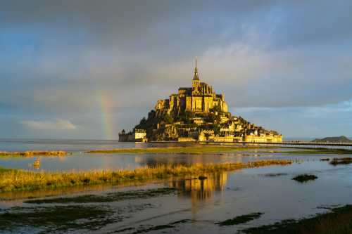 もうすでにグショグショだから、どうでも良いのだ。 見ろ、正解を示すかのように虹が出ている。 オーロラに彗星に満潮のモン・サン・ミシェル。 今回の目的は何とか達したな・・・。