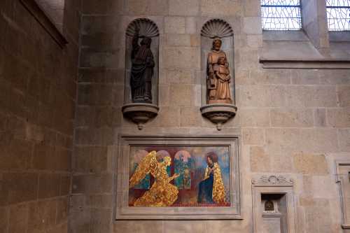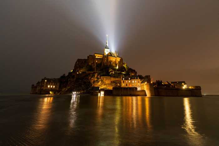フィルターを落とした所は結構遠い。 昨夜海から逃げながら歩いてて、金網に引っかかって服が裂けていた。 あんなギリギリまで攻める必要が一体どこにあったのかと思う。 選択する時には、俯瞰で決めなければならん・・・のだが。 やっぱり撮りたいモノは仕方ないな。 羊のフンを避けつつ歩いていくと・・・ あったあった、ありました!! ヤレヤレですわ・・・。 さて少し移動しますかね。 モン・サン・ミシェルから80キロほど離れたところに、サン・マロという港町がある。 防壁に囲まれた景色を一度見てみたい。 必要最低限の荷物にして発進。 ハイウェイを西に向かい14:00過ぎに到着すると、海が思いっきり干上がっている。 モン・サン・ミシェルが遠浅になる時間だから当然か。 想像力が足りなかったわ。 パーキングに停めてブラブラ歩いてみる。 海が無いのが残念だ。 この町は高潮と風が重なると、防波堤を超えるぐらいの高波が押し寄せたりする。 ただ、その姿を見たければ、満潮のモン・サン・ミシェルを諦める必要がある。 しかもそこまでの波が押し寄せるかは博打要素。 う~む、満潮のモン・サン・ミシェルを捨てて来ることが出来るかどうか・・・。 町を囲む城壁をブラブラブラブラ。 トイレに行きたくなったのでカフェでケーキを食い、さらにぶらつく。 すると、教会らしき尖塔が見える。 行ってみると結構大きな教会で、バラ窓も、 中に飾られている画もとても美しい。 特に受胎告知のコレ。 金のガブリエルが浮かんで見えて、大変眼福であった。 こういう発見があるから色々見て回る必要があるし、 且つ絵画から写真のヒントになるから侮れないんだなぁ・・・。 空を見上げると西からどんどん雲が広がってくる。 やはりこれからどん曇りか・・・。 モン・サン・ミシェルに戻る頃には、曇りまくってしまった。 今日は彗星はダメだ。 残念。 満潮になる前にモン・サン・ミシェルに入ってしまいたい。 今夜は中からだ。 満潮時間までまだあるのでレストラン・・・と思って ラメールプーラールへ行ってみるとフルブックス。 マジでか。 残念やんけ。 仕方ないので近くのレストランで食おうと思ったら、コレがまた遅いのなんの。 やっぱり外から撮ろうかと思っていたのに、 待ってるうちに満潮時間になっちまったよ。 あまりに遅いので、デザートを放棄して辞去した。 やはり写真とメシは相容れない。 入口に戻ると、中まで海水に浸かっていた。 こんな風になるのか。 しばらく待つと潮が引いて、モン・サン・ミシェルの入口に、少しだけ浅瀬ができた。 本当の満潮で孤島になるのは、時間的に僅かなんだな。 潮の満ち引きがいかに早いかということであろう。 やはり「満潮時間」と書いてある時間よりも早めに来ておくべきですわ。 今宵も壮観な眺めをしっかり撮ってホテルに戻り、爆睡となった。 Zzz・・・