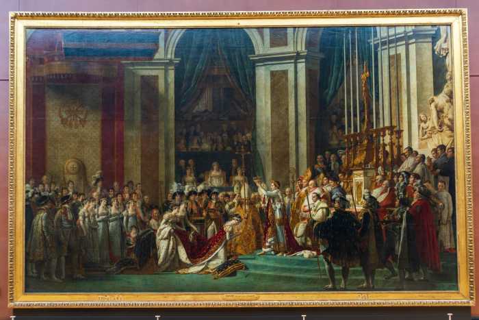 -20 Oct 6:00起床。 今日も天気が悪い。 残念だ。 今日は22:00の帰国便までパリ観光。 9:00からルーヴル美術館を予約済みで、後は適当。 正直どうしても見たい、というのは無い。 もう何度か見に来てるしな・・・。 とりあえず夜明け前に凱旋門で写真を撮ってから、ルーヴル美術館へ行く。 チェックアウトして地下鉄で凱旋門。 今日は晴れなさそうだから、こういう時間帯に撮っておくのが大切だ。 この偉容を見ると、ヨーロッパに来てるなぁと思うね。 ルーヴル美術館は早めに行っといた方が良かろうということで、 8:30前に着いたら、結構前の方に並べた。 そしてしばらくしたら一気に長蛇になったので、グッドタイミングだったな。 開場とともに皆が向かう方へ着いていく。 きっとモナリザへ行くんでしょ。 我輩の目的は別だが、すぐ近くにあるハズなので着いていけばオッケイだ。 とりあえず第一陣でモナリザを見学し、 我輩がルーヴルで一番見たい作品、ナポレオンの戴冠の前に到着。 コレよコレ。 コレが見たいのよ。 世界一の傑作だよなぁ。 このデカさにしてこの繊細さ。 今にも動き出しそうだ。 我輩は「神は細部に宿る」という言葉を意識して写真を撮ってるつもりで、 その原点はここにある。 目に焼き付けるほどに眺め倒した。 もうパリに来る用事が無い気がするので、展示をくまなく見て回って、地下のスタバで朝食。 で、今日見ておきたいのはナポレオンの戴冠とオペラガルニエ。 てくてくと歩いて行って、幸い空いていたので待ち時間なくサクッと見学。 16ミリのレンズでは写し切らなかったので、14ミリのレンズでしっかりと撮影した。