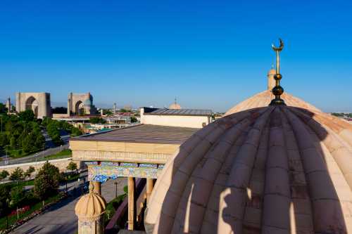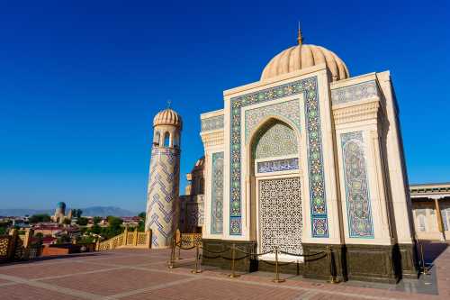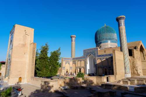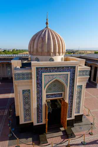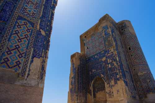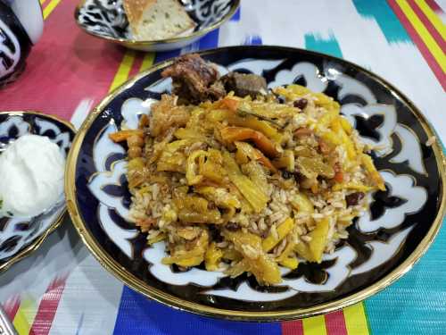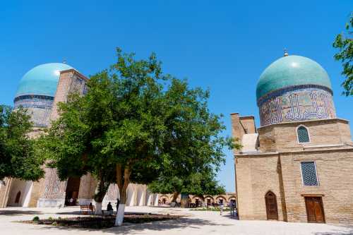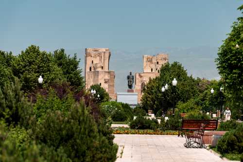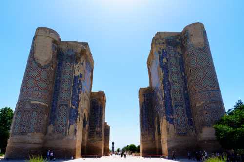 何度も何度も目が覚めては寝てを繰り返し、熟睡出来ないまま朝になってしまった。 今日は昨日チャーターしてもらったタクシーで、シャフリサーブスという町へワンデイトリップ。 遺跡がある町だそうな。 サマルカンドに何日もいても仕方ないので、行くことにしたのだった。 昨日、「午後だけで行きたい」と言ったら、「遠いので終日になる」とのこと。 1日チャーターで580,000スム。 約6,500円である。 6:30、レギスタン広場を見に行くと、広場内の宿泊客であろう僅かな人がいて写真を撮ってる他は無人。 青色の床にメドレセがうっすらと映り、何とも美しい。 もっと早く来れば良かった。 ブラブラとハズラティヒズルモスクまで散歩。 今日も雲一つ無い快晴である。 入って良いのかまだ開いてないのかよく分からんが、 怒られるまで行ってみようと入ってみたら大丈夫だった。 ビビハニム・モスクが見える。 昨日は逆光だったから、今日は良い感じである。 ブラブラしてたら、「ミナレットに登らないか?」 と、昨日と同じような提案を受け、 フィーをお支払いし、小さな入口から塔を登る。 見える景色はしれており、ここはそこまで上に登る価値は薄かったかな。 ま、貴重な経験にはなったけど。 ブラブラし続け、飾り窓みたいなところから写真を撮ったりしたら満足した。 ホテルに戻って、小さな食事スペースでメシ。 パンとかを出してくれていたところ、無慈悲なチャイニーズオバハンたちがワラワラと現れ、 コーヒーだのパンだのとガチャガチャ要求し始めた。 少ないメンツでやってるに違いないのに、 そんな風に提供出来んやろ・・・と憐れみの視線を送りつつ、興醒めてしまったので我輩は退出。 タクシーが迎えに来るのを待って、出発。 デカイワゴン型のタクシーを提案してくれたのだが、 普通ので良い、と伝えたので、来たのはセダンタイプ。 まぁ十分だ。 オーナーが連絡先を教えてくれ、「何かあったら電話をくれ」 とのこと。 ホント、親切極まる対応である。 このホテルは本当にオススメよ。 タクシーは南へ向かい、まずは湖が見下ろせる遊園地のような遊び場で止まった。 ハート型を手で作ったような岩があったり、麓に広がる湖が美しい。 よく分からん若者が一生懸命話しかけてきて、 「ラッションラングエッジを話せるか?」 と何度も聞いてきて話が出来ず申し訳なかった。 ラッションがロシアンだと分かったのはこの後約6時間後ぐらいだったのだ。 許せ。 峠を越えて、シャフリサーブスに到着したのは丁度昼。 3時間待ってるからゆっくり観光してこい、だそうな。 さて、このシャフリサーブスとは一体何なのか、という話だが、 かつてのウズベキスタン辺りを支配していたティムール朝の親玉、 ティムール生誕の場所だそうで、その廟がここらしい。 3時間もいるのかな?と思いつつ、まず手近なモスクへ。 ここもサマルカンド同様にエメラルドグリーンのドームがある。 タマネギというより円筒形になっているドームの形と幾何学的な紋様が相まって、 大変に美しい。 はて、これだけで3時間?と思ったら、 離れた場所に宮殿の遺構があるようなので行ってみる。 原付でも送ってくれるみたいだが歩くことにする。 というか、タクシーで送ってくれたら良いのに。 公園になっている長い道を約20分ほど歩く。 見えてきたのはデッカイ壁。 コレが門だとして、どんだけでかい宮殿だったのって話だな。 これも深い青色が大変に美しい。 我輩が群青色好きってこともあるけど、どの建物も色合いが素晴らしいな。 そして何があるかというと、この遺構があるだけなので、特にすることはない。 折り返してしまうことにする。 この公園のような所の東側には宿泊施設があるのだが、 稼働しているようには見えない。 カフェも開いてなければ噴水も止まっているし、 観光のピークシーズンはいつなんだろうか。 コーラを一気飲みしてタクシーの所へ行くと、運ちゃんも涼んでいた。 来た道を帰る。 途中の峠でシャシリクという串焼き肉を食わせてくれるらしい。 しかし英語が全く通じないので、ボディラングエッジと写真だけでの会話である。 この峠は何がどう有名なんだか知らないが、 猛烈に混んでて、予定していた所では食べられないらしい。 峠の頂上付近のレストランで止まってドライバーが食べれるか聞いてる間に、 現地人のグループに呼ばれて、翻訳ツールを使って会話。 アレを食えだのコレを食えだの、 変なの混ざってんじゃないかと心配性な我輩は、適当にごまかして済ませた。 峠を下っていったところの店で再びストップ。 今度は食えるようだ。 ドライバーがメシをオーダーに行ってる間に、 ご家族グループの女の子が話しかけてきたのでお喋り。 この近くのナボイという町に住んでてメシを食いに来たらしい。 ウズベキスタンの食事はピルーフが美味しいので、 オイリーだけど食べてみて欲しい、とのこと。 ドライバーが山ほどの羊肉を持って