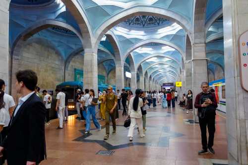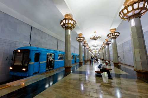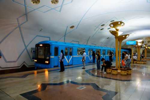 何でや・・・。 向かいはウズベキスタン美人ではあるが、何ともはやな4時間だった。 さて、タシケント駅にスーツケースを預けて、夜の便まで観光とする。 ホームの地下に手荷物預けがあり、どうもコレを調べているのはほとんど日本人。 日本人の長蛇の列が出来ていた。 係員が「君たちはみんなグループなのか??」と少々ウンザリしていた。 我輩は早めに預けて出発。 地下鉄の写真を撮り撮り、国立美術館へ行ってみると休館日。 嘘やん。 ティムール博物館も休館日。
