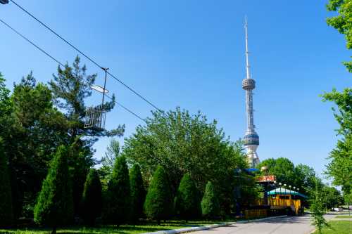 えぇ・・・。 タシケントで一体何をしたらいいのだ・・・。 卓球に興じる人々を横目に仕方なく少し調べると、 テレビ塔があって、展望台になっているらしい。 本当なら博物館巡りをして時間を潰すつもりだったのに、 そこぐらいしか行く所がない。 地下鉄を乗り継いで行く。 ウズベキスタンでは卓球がメジャーなのだろうか。 広場のあちこちに卓球台が置いてあって、 昼休みみたいな感じでカッターシャツ姿の人々が卓球を楽しんでいた。 意外な文化だな。 休園なのか閉園なのか、人気のない遊園地を通り過ぎるとテレビ塔が見えてきた。